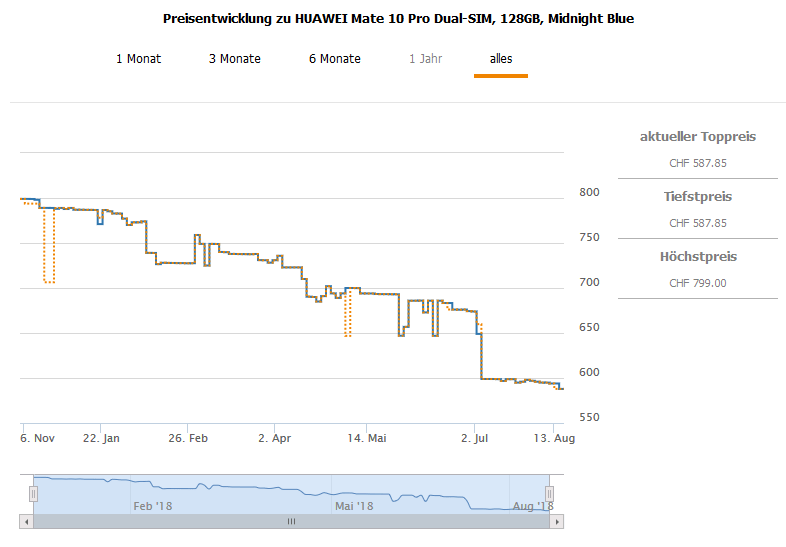 In der Farbe Midnigt Blue gab es das Handy gemäss toppreise jedenfalls noch nie günstiger als für CHF 587.85 was gleichzeitig aktuell auch der zweitbeste Preis ist.