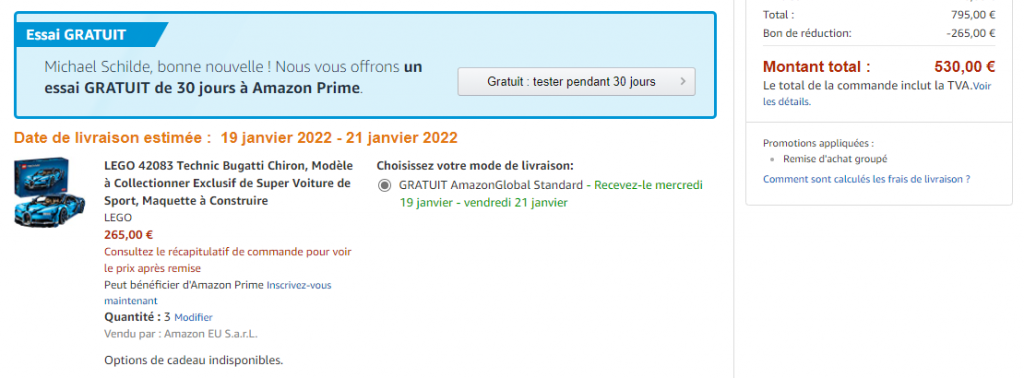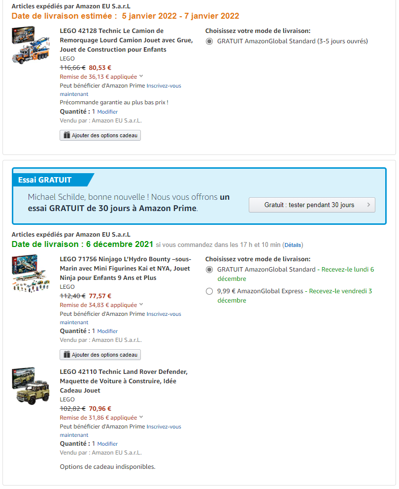 Bei amazon.fr gibt es aktuell eine 3 für 2 Aktion auf ausgewählte Lego Sets.