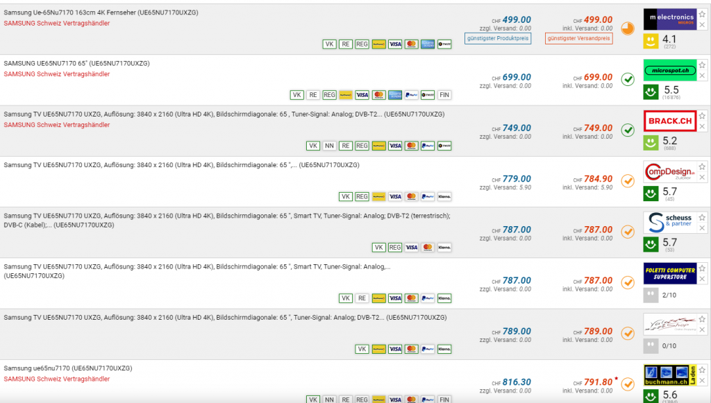 Bei melectronics gibt’s gerade den Samsung UE-65NU7170 für CHF 499.- Bestpreis bisher war bei CHF 639.90, zweitbester Preis beträgt CHF 699.-