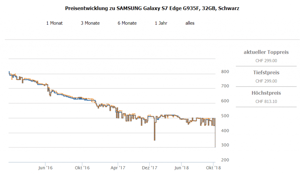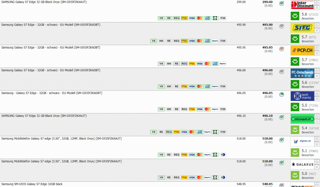 Bei Interdiscount kann man momentan das Samsung Galaxy S7 Edge 32GB für CHF 289.- abstauben, wenn man beim Checkout den Gutscheincode HFWID10 eingibt. Der zweitbeste Preis in der Schweiz für das Handy beträgt CHF 495.90, bisheriger Bestpreis war bei CHF 349.-