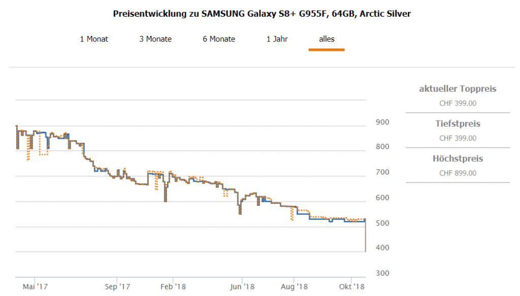 Bei Interdiscount erhält man gerade das SAMSUNG Galaxy S8+ 64 GB Arctic Silver für CHF 389.- wenn man den Gutscheincode HFWID10 beim Checkout eingibt.