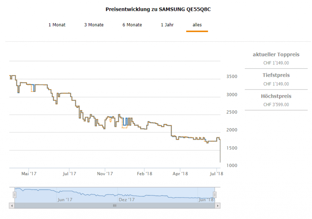 Mit diesen Coupons gibt’s den QE-55Q8C für nur 1’024.10.- !