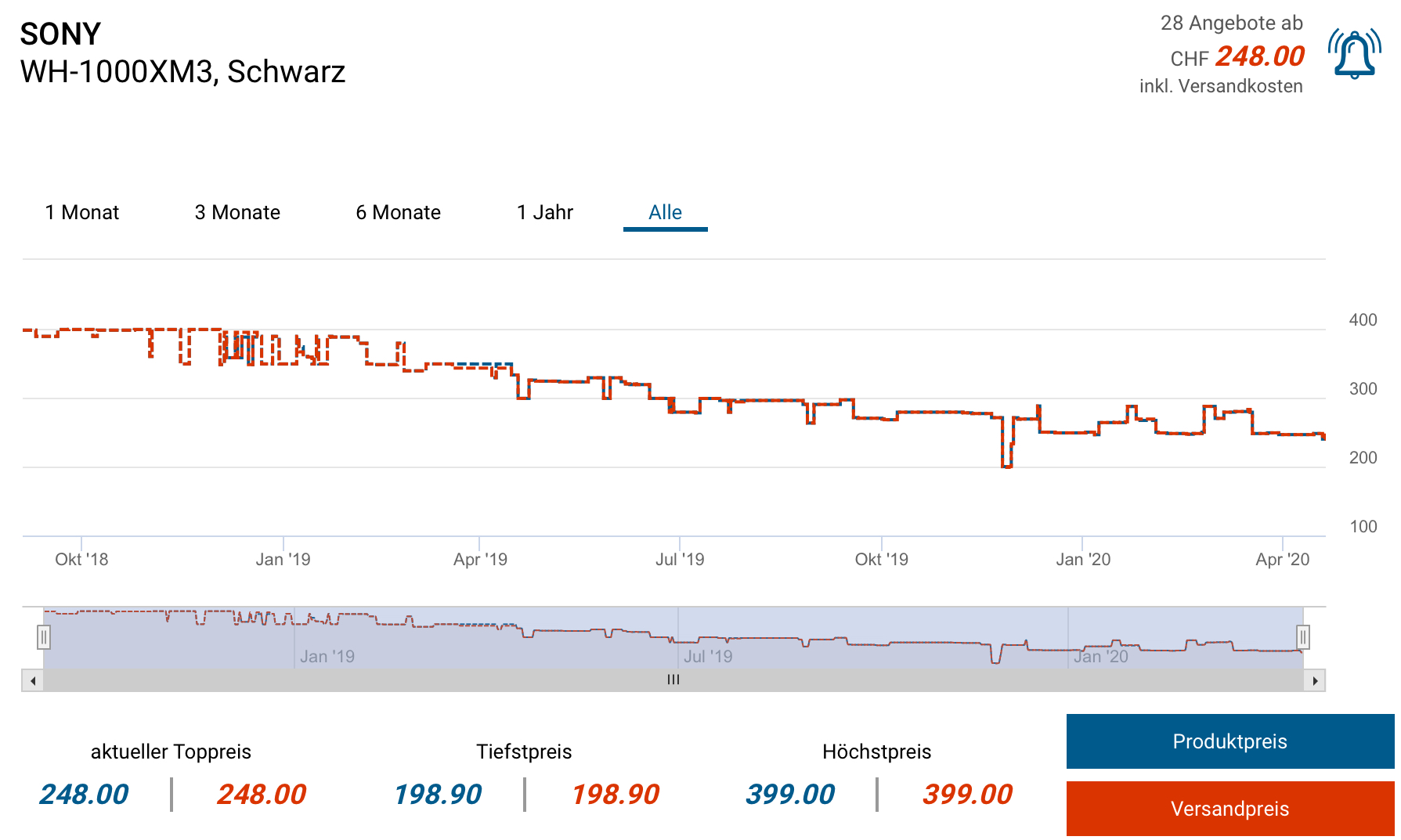 Bei amazon.it gibt es aktuell den SONY WH-1000XM3, Schwarz für 169.- EUR.