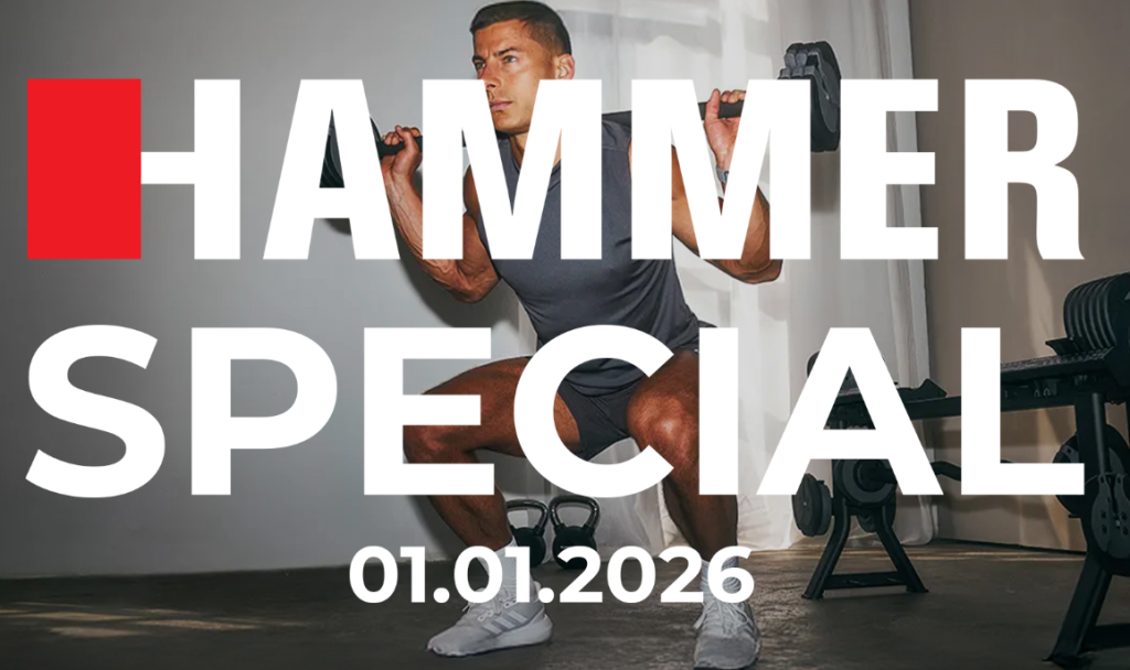 Heute gibt’s 6 Schnäppchen für deinen sportlichen Jahresstart! Mit über 120 Jahren Erfahrung im Sportartikel-Bereich setzt HAMMER auf Qualität und Innovation – perfekt für dein Heimfitness-Programm.