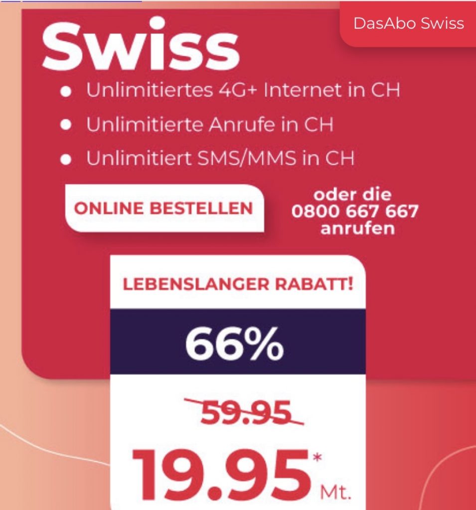 Der Anbieter „Das Abo“ (Salt) bietet in der Schweiz unlimiertes Internet, Telefonieren und SMS versenden zum Aktionspreis an.