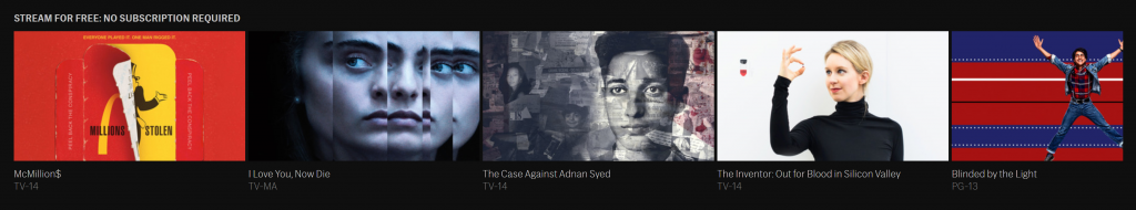Wenn ihr also mit dem VPN verbunden seid, einfach auf „Zum Deal“ klicken und etwas nach unten scrollen. Dort kommt der Punkt „STREAM FOR FREE: NO SUBSCRIPTION REQUIRED“ Alle diese Serien und Filme sind gratis.