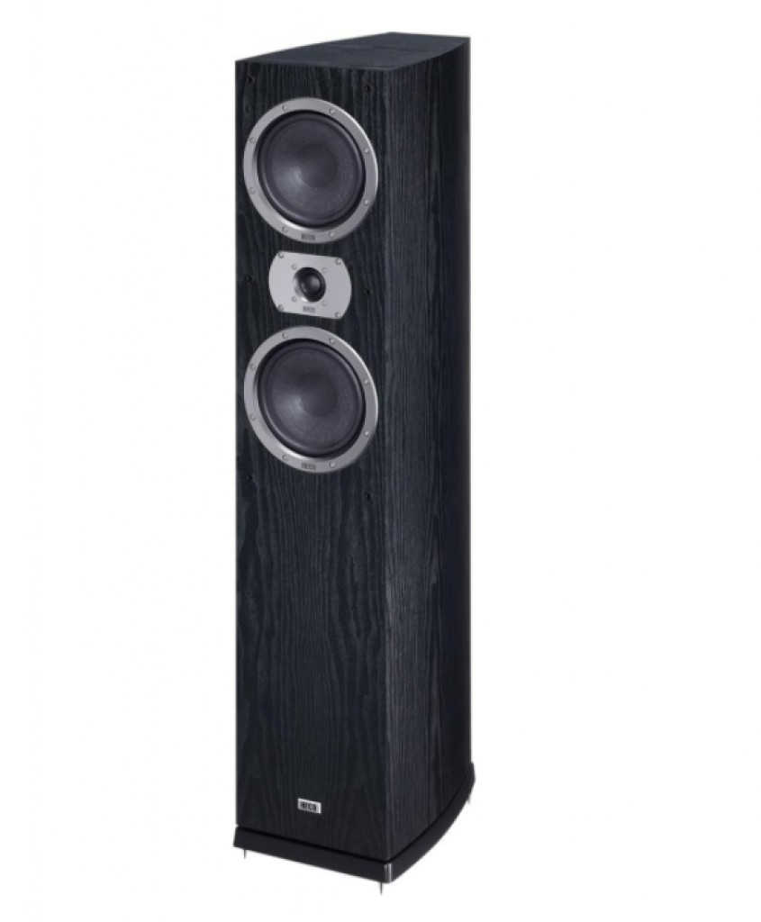 Eine 25 mm Seiden-Gewebekalotte mit Ferrofluidkühlung sorgt auch in diesem Modell für erhöhte Belastbarkeit und eine verbesserte Ankopplung an den Mitteltöner über einen Kurzhornansatz. Leicht gerundete Seitenwangen verleihen dem Lautsprecher eine moderne Optik und sind zudem aufwändig aus schichtweise verleimten und formgepressten MDF-Platten hergestellt. Optimale Voraussetzungen für die Arbeit der Chassis und die Bassreflexabstimmung bietet die äusserst resonanzarme Gehäusekonstruktion.