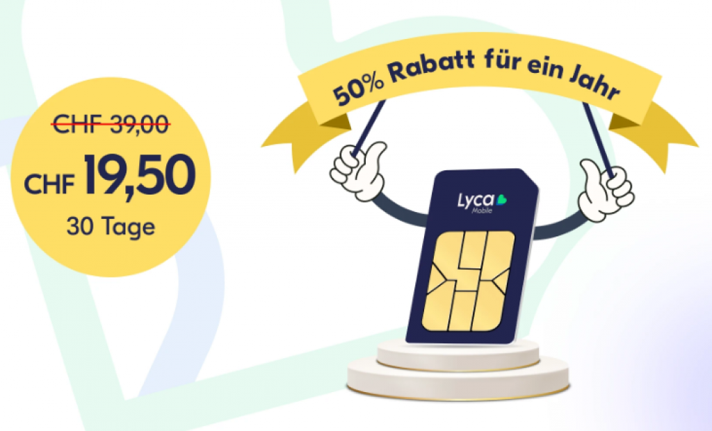 Bei Lycamobile gibt’s aktuell das Abo Hello Swiss Max während 12 Monaten zum halben Preis für 19.50 Franken pro Monat! In diesem Abo sind folgende Inklusivleistungen mit dabei: