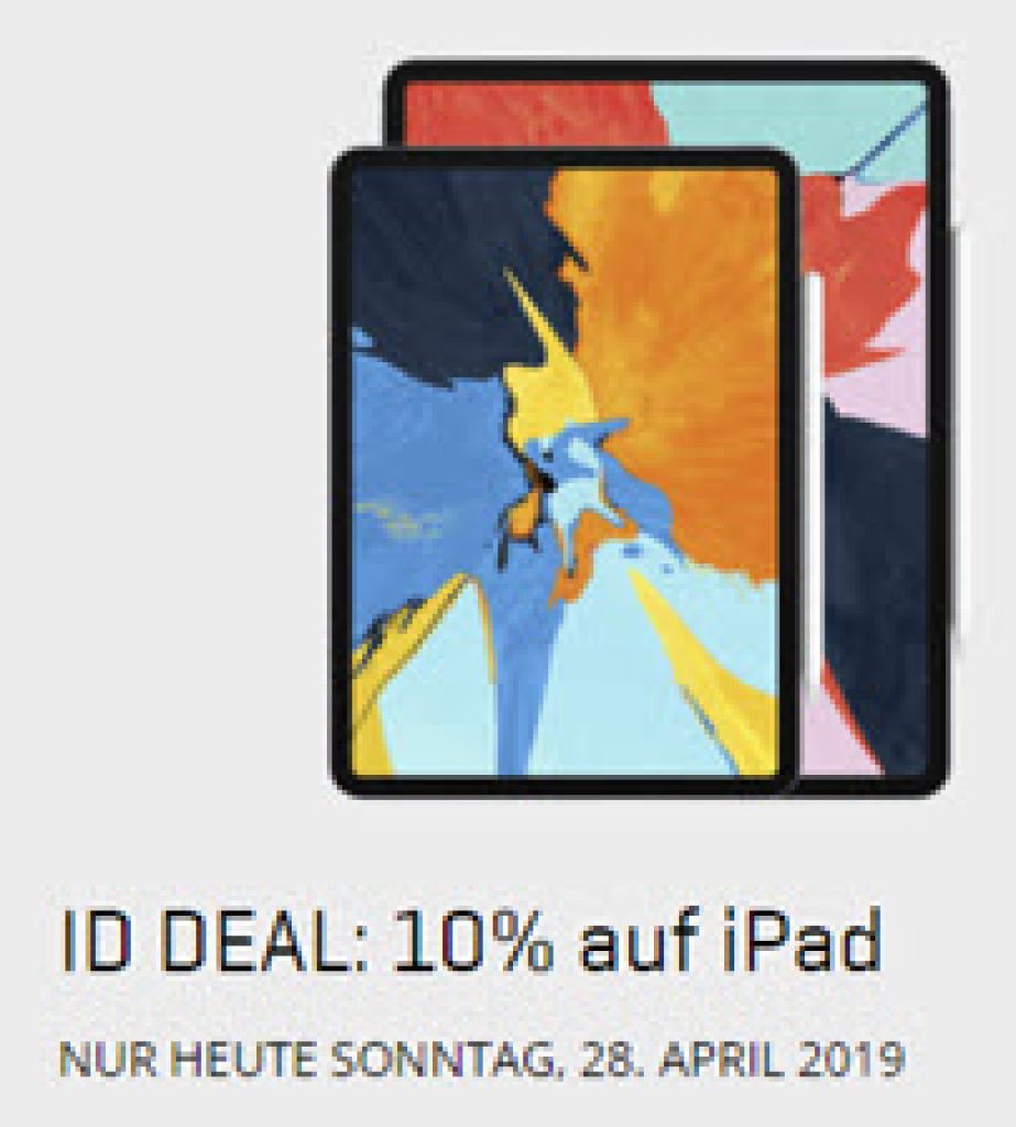Heute (28.4.2019) gibt es bei Interdiscount 10% Rabatt auf alle Apple iPads.