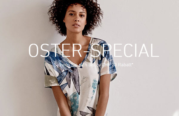 Bedingungen: Gültig bis einschliesslich 22.04.2019 ab einem Mindestwarenwert von CHF 100 bzw. CHF 130 (abzgl. Retouren). Pro Bestellung kann nur ein Gutschein eingelöst werden. Die Gutscheine sind nicht mit anderen Gutscheinen, Aktionen und Rabatten kombinierbar. Keine Barauszahlung oder nachträgliche Anrechnung möglich. Nur online einlösbar.