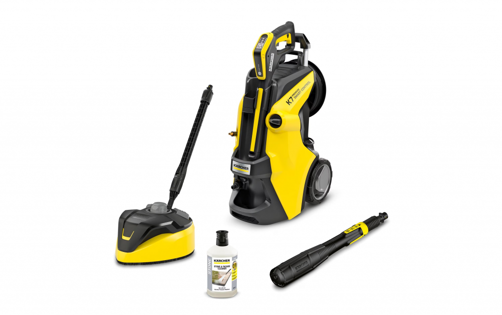- Smart Control-Pistole mit +/− -Tasten und LCD-Display zur Drucksteuerung und Reinigungsmitteldosierung