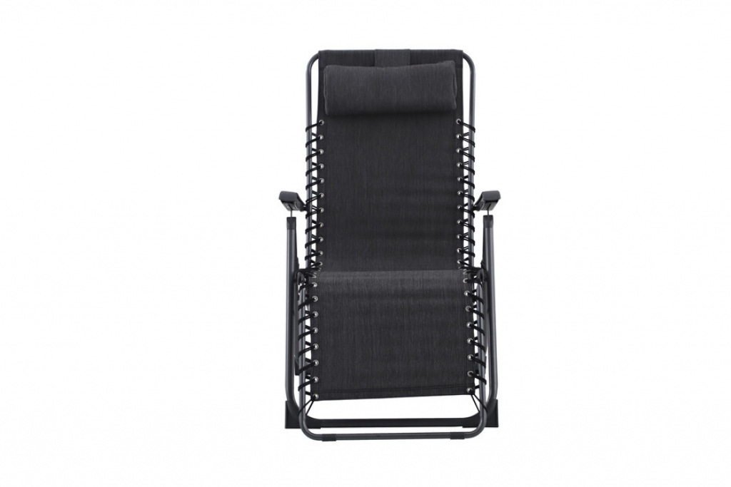 - Eigenschaften: Stahlgestell, pulverbeschichtet schwarz, Textilene schwarz, inkl. Kopfkissen, mit mehrfacher Relaxfunktion, klappbar