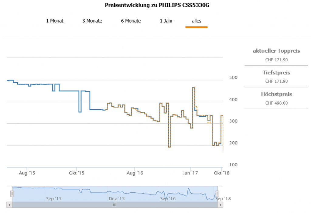 Gemäss toppreise war der best price bislang bei 191.80 CHF, der zweitbeste Preis liegt aktuell bei 183.60 CHF. Bei microspot kostet das Set aktuell 345.85 CHF und bei digitec 349.- CHF.