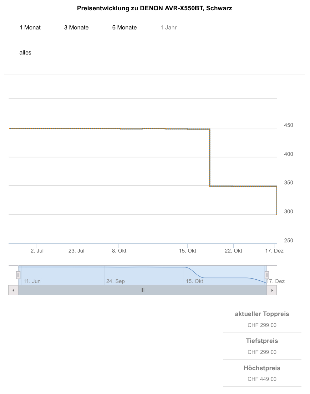 Gemäss toppreise war der bestprice bislang bei 348.90 CHF, was aktuell auch der zweitbeste Preis ist.