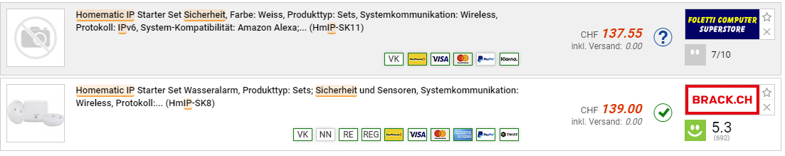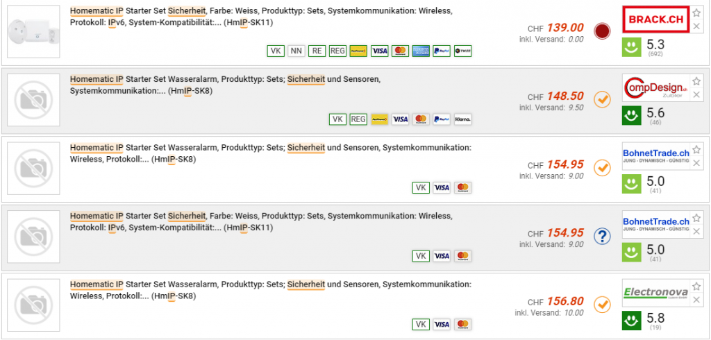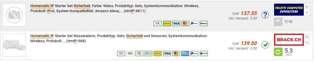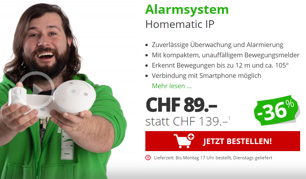 Bei DayDeal gibt es das Homematic IP Sicherheit Starter-Set für den neuen Bestpreis von CHF 89.-. Leider ist keine Preiskurve vorhanden, jedoch liegen alle anderen Angebote weit über CHF 100.-. Der zweitbeste Preis beträgt CHF 137.55.
