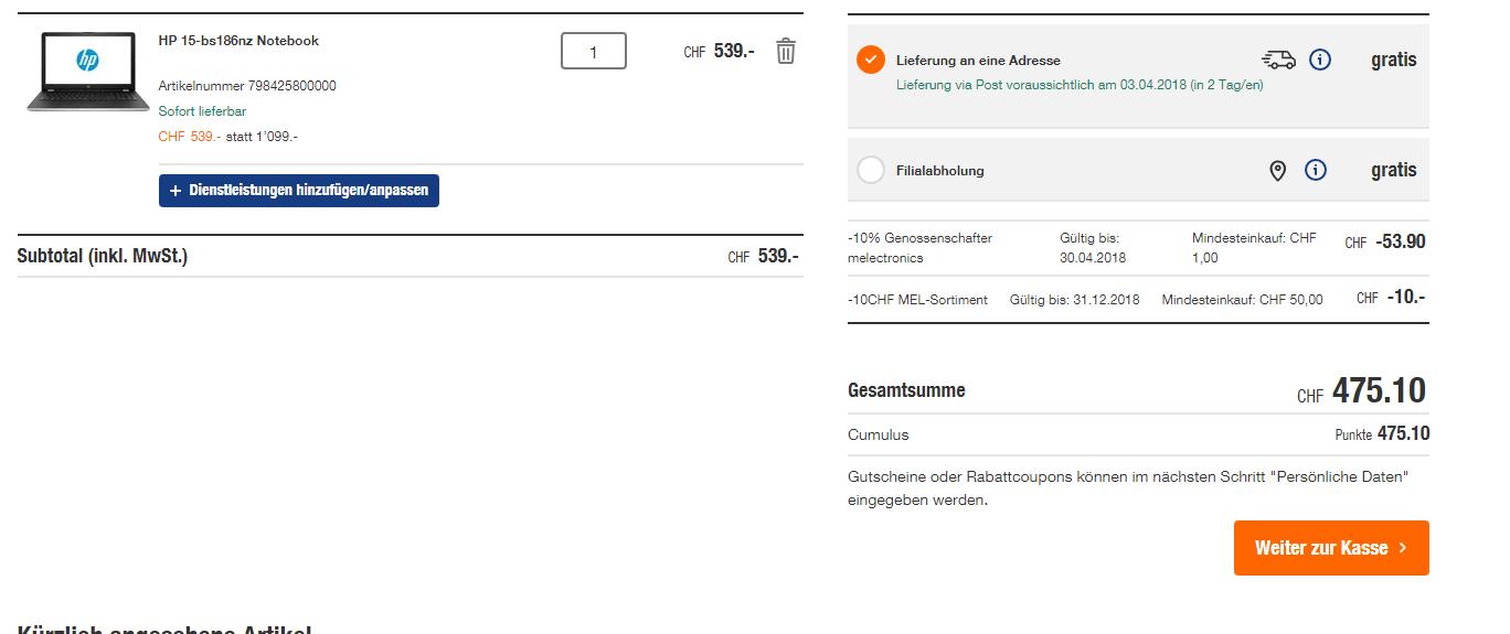 - Melectronics Newsletter abonnieren. Darin erhält man einen 10 Franken Gutschein – kann auf eine Wegwerfmailadresse gemacht werden.