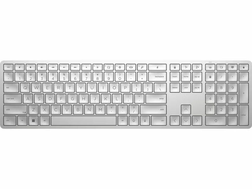 Das HP 970 Programmable Wireless Keyboard ist eine hochwertige Tastatur, die durch ihr Design und ihre Funktionen beeindruckt. Sie bietet kabellose Konnektivität über Bluetooth und einen USB-Empfänger, was die Verbindung mit mehreren Geräten möglich macht. Das Gerät verfügt über 20 programmierbare Tasten, die über die HP Accessory Center App individuell angepasst werden können, was dir maximale Flexibilität bei der Steuerung bietet.