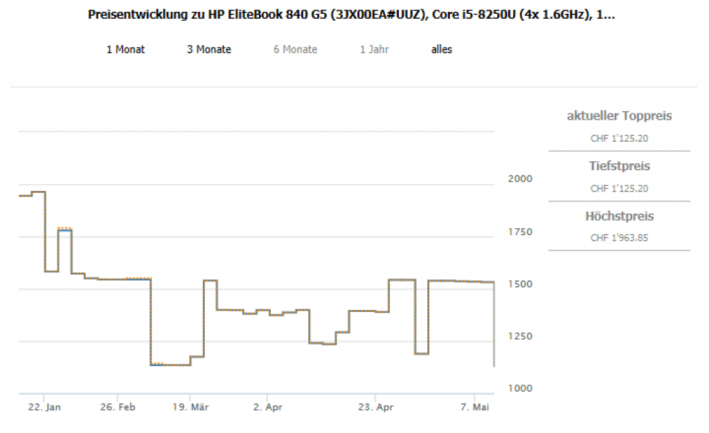 Das HP EliteBook gab es im März schon einmal für 1134.60 CHF günstiger allerdings noch nie.