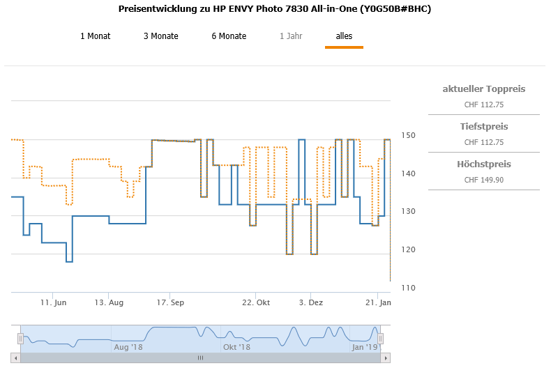 Gemäss toppreise war der bestprice bislang bei 119.90 CHF, der zweitbeste Preis liegt aktuell bei 149.90 CHF.