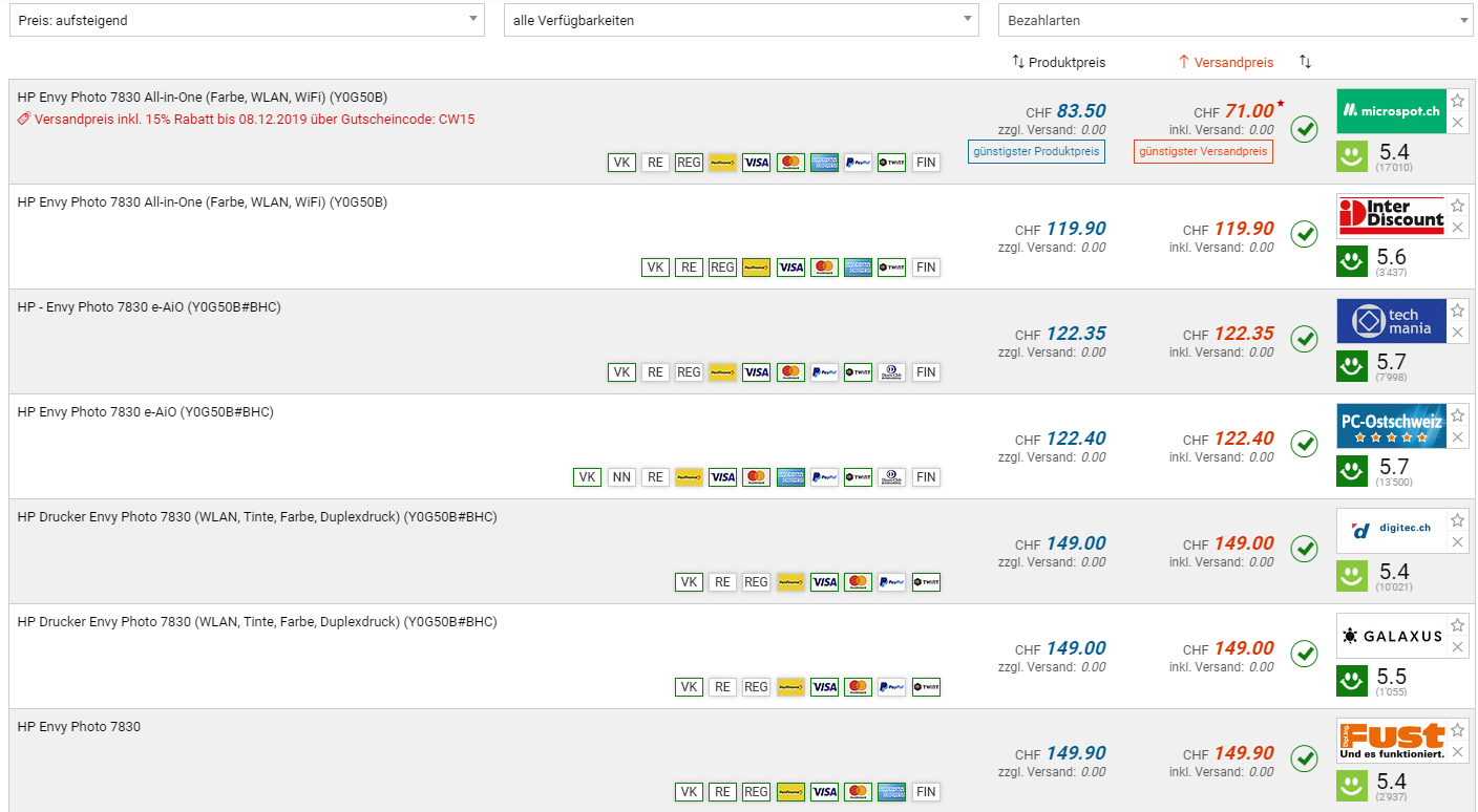 Top Drucker mit 15% Rabatt (Code “CW15“) inkl. Gratisautobahnvingette !
