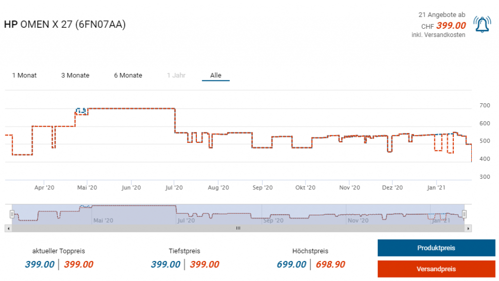 HP OMEN X 27 (27″ TN WQHD, 240 Hz, 400 nits) bei Fust zum neuen Bestpreis