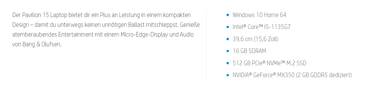 Einen richtigen Vergleichspreis gibts nicht, da laut toppreise keine von den Specs vergleichbaren Pavilion Laptops mit i5-11-Prozessor zu finden sind. Um vom Dealpreis zu profiteren muss man mit einem eingeloggten Business-, TCS- oder Studentenaccount dem Link folgen, als Gast oder Normaluser gibts keine 12% Abzug.