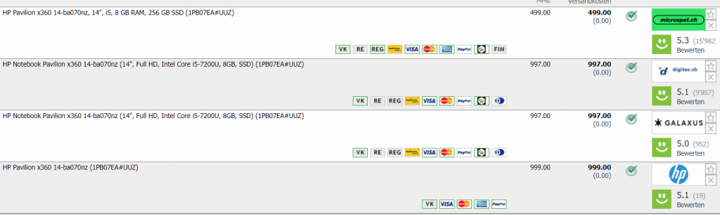 Bei microspot.ch gibt es den HP Pavilion x360 14-ba070nz mit 14″ Bildschirm, i5 Prozessor, 8 GB RAM und 256 GB SSD für einen absoluten super Preis. Mit dem Gutscheincode HFNEU7 sparst du noch einmal 10.-