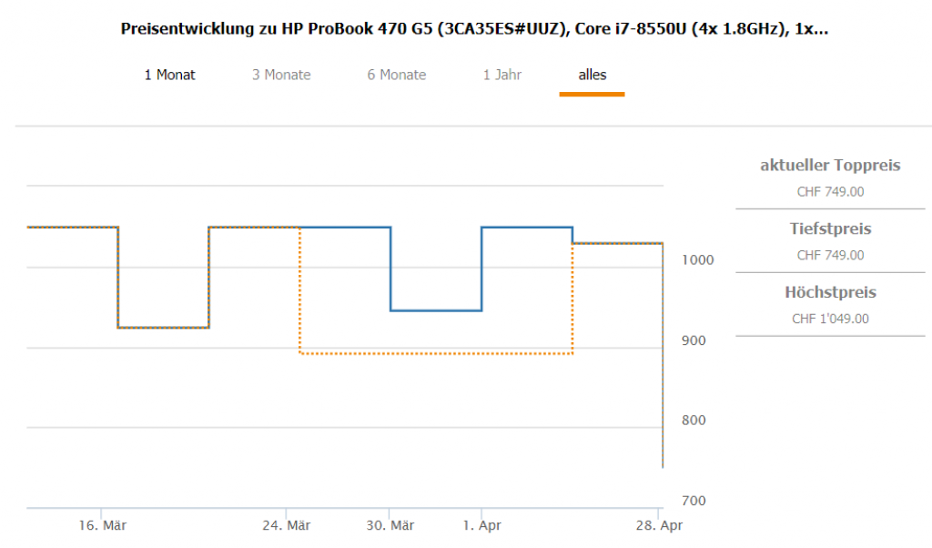 Bei microspot gibt’s das HP ProBook 470 G5 (17.3 “, Intel Core i7, 8 GB RAM, 256 GB SSD) sowie mit der dedizierten Grafikkarte Nvidia GeForce 930MX für CHF 749.- Ein sehr vergleichbares Notebook gab’s erst vor Kurzem für CHF 699.- dieses hatte jedoch nicht die dedizierte Grafikkarte.