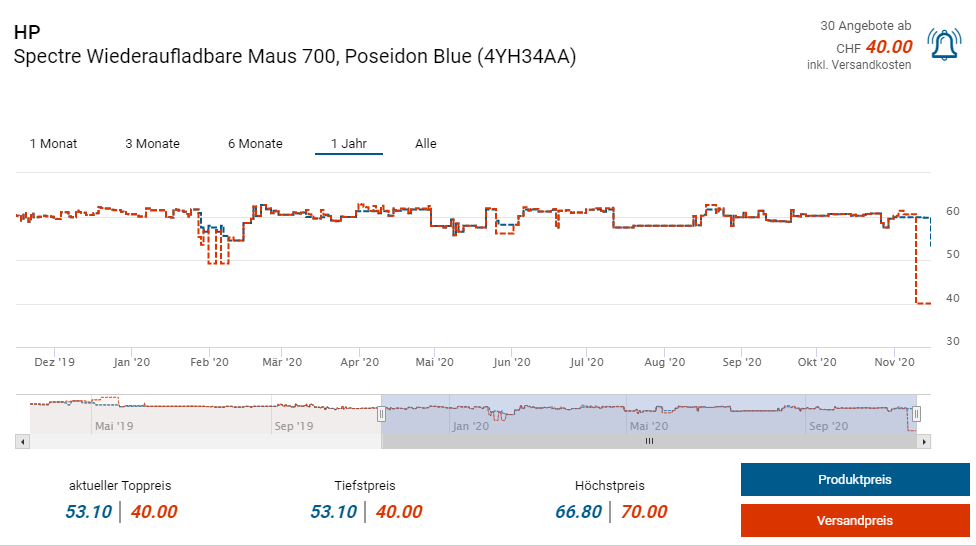 Im HP Store gibts derzeit wohl noch wenig Stück der wiederaufladbaren, kabellosen Maus HP Spectre 700 zum Aktionspreis von CHF 40.- resp CHF 32.- mit einem Mitarbeiter-Store-Account.
