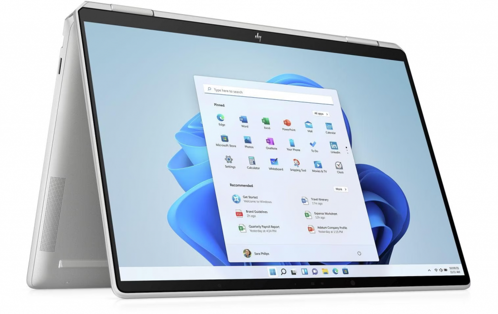 - Glänzendes 13.5″-WUXGA+-Touch-Display (1920 x 1280 Pixel) mit 360°-Gelenk und 100% DCI-P3-Farbraum