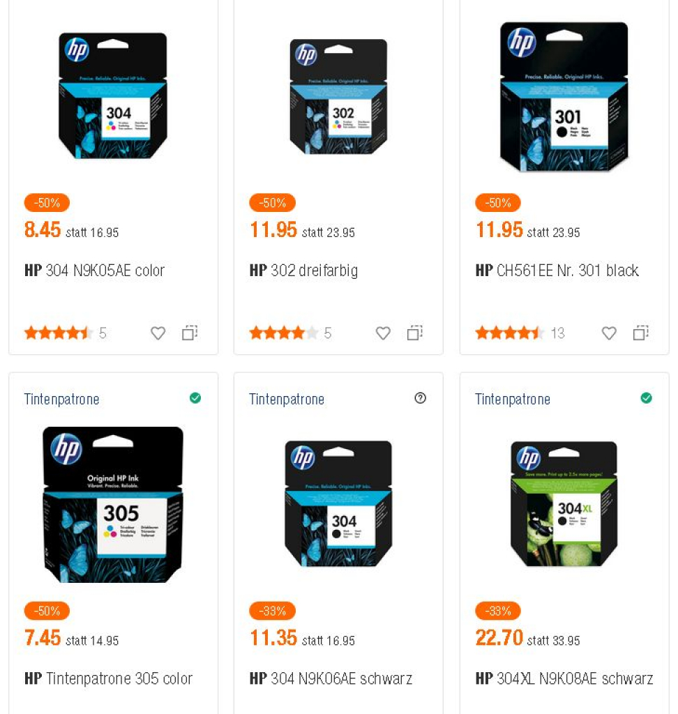 HP Tintenpatronen 33% bis 50% Rabatt!
