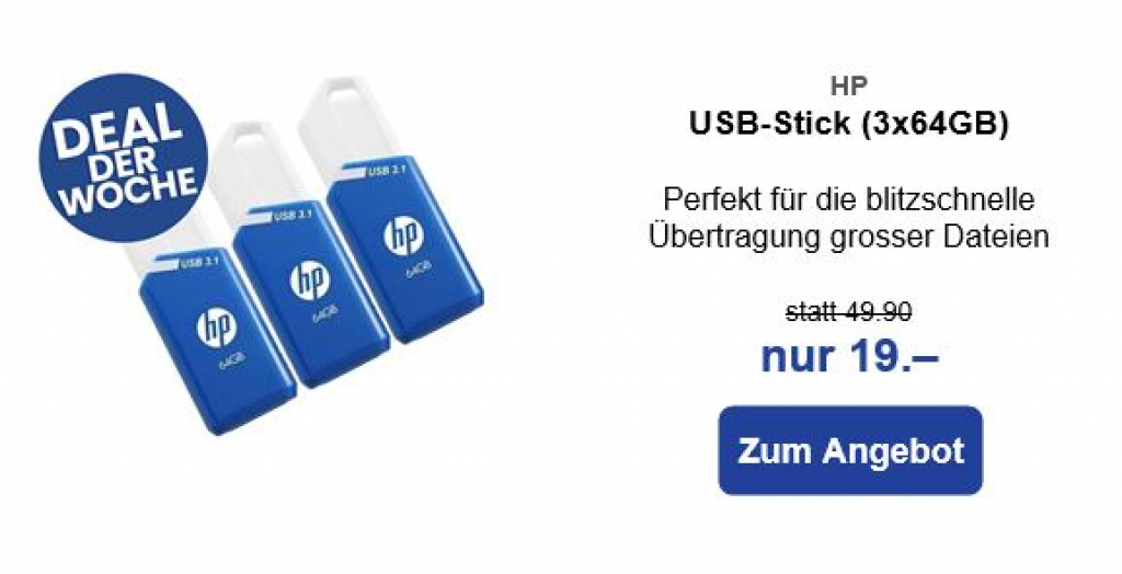 Triple Pack USB-Stick mit 64GB Speicherkapazität und 75MB/s Lesegeschwindigkeit
