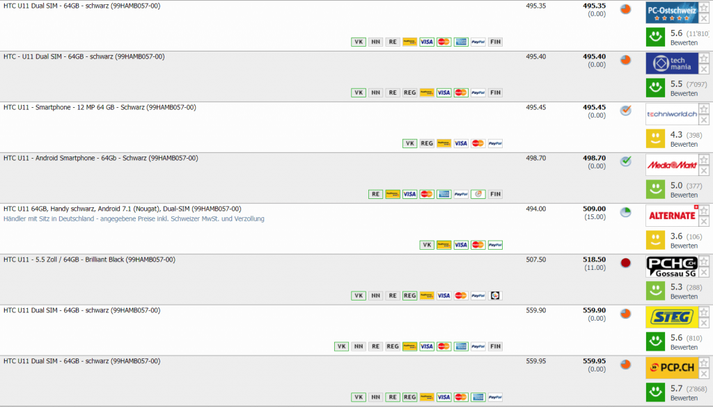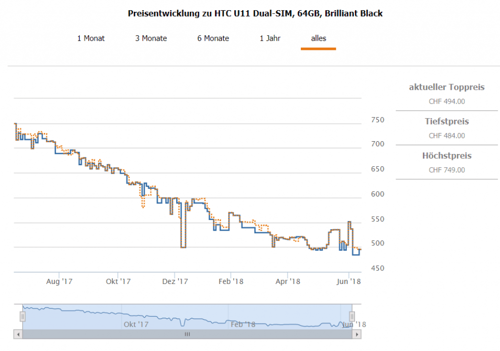 Bei DayDeal gibt’s gerade das HTC U11 für CHF 399.- Bereits ist fast die Hälfte ausverkauft. Zweitbester Preis in der Schweiz beträgt CHF 494.- Günstiger als für CHF 484.- erhielt man das U11 in der Schweiz laut toppreise noch nie.