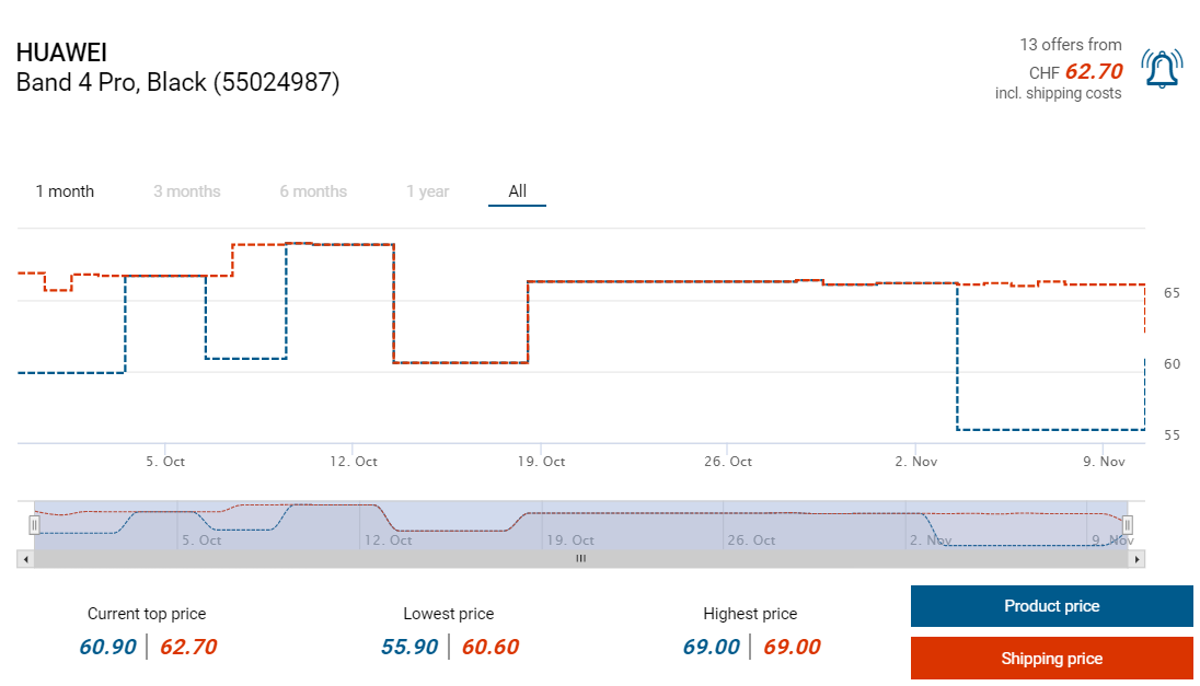 Bei Amazon gibts derzeit das Huawei Band 4 Pro in den Farben Schwarz, Rot und Rosa zum Aktionspreis von knapp 45 Franken. Laut toppreise ist hierzulande die schwarze Version am günstigsten und würde CHF 62.70 kosten.