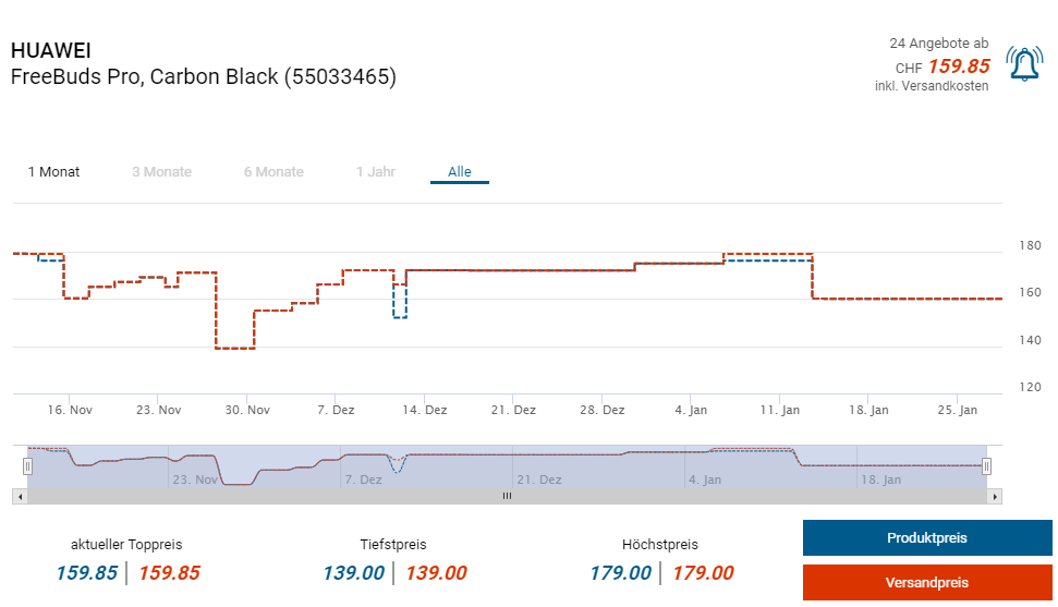 Bei Amazon gibts derzeit die TWS In-ear-Kopfhörer FreeBuds Pro von Huawei zum Bestpreis von knapp 126 Franken. Laut toppreise liegt der Vergleichspreis bei fast 160 Franken, zuletzt gabs das Angebot für 130 Franken mit einem 5€ Amazon Gutschein vpr einem Monat.
