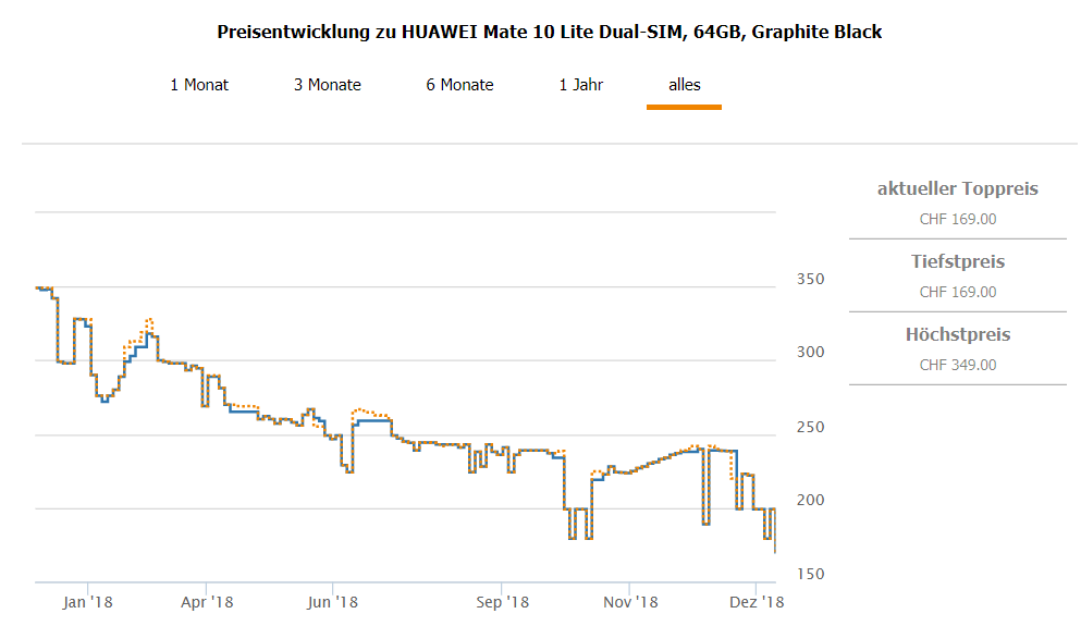 Bei microspot gibt’s gerade das Huawei Mate 10 Lite für CHF 169.- Zweitbester Preis in der Schweiz beträgt CHF 199.- Bisheriger Bestpreis lag jedoch (war innert sehr kurzen Zeit ausverkauft) bei CHF 149.-