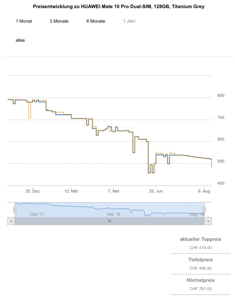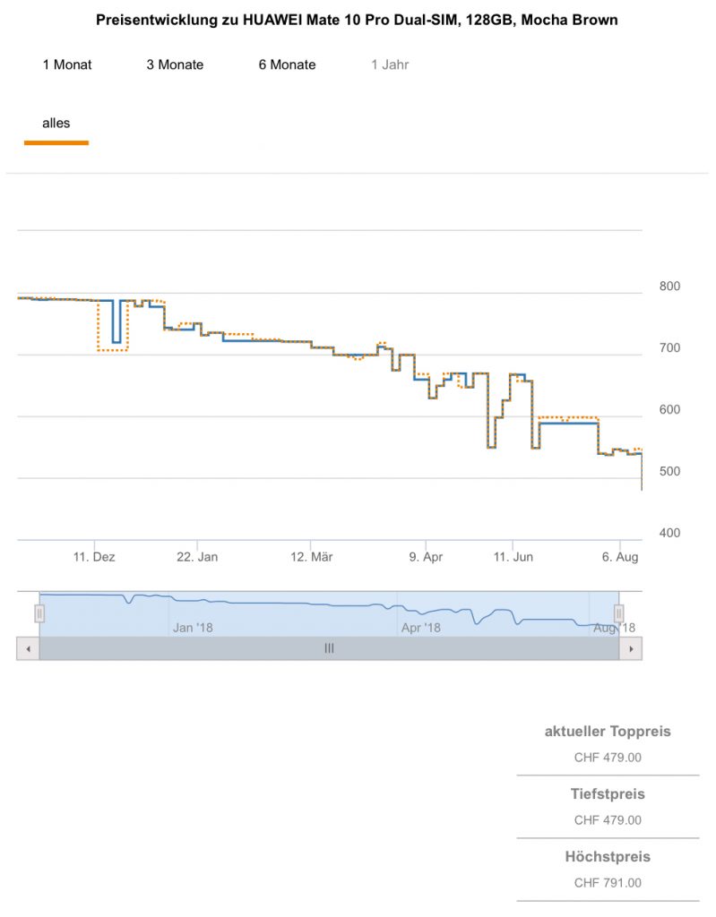 microspot hat gerade den Preis für das HUAWEI Mate 10 Pro Dual-SIM mit 128GB in den Farben Titanium Grey und Mocha Brown auf 479.- CHF reduziert.