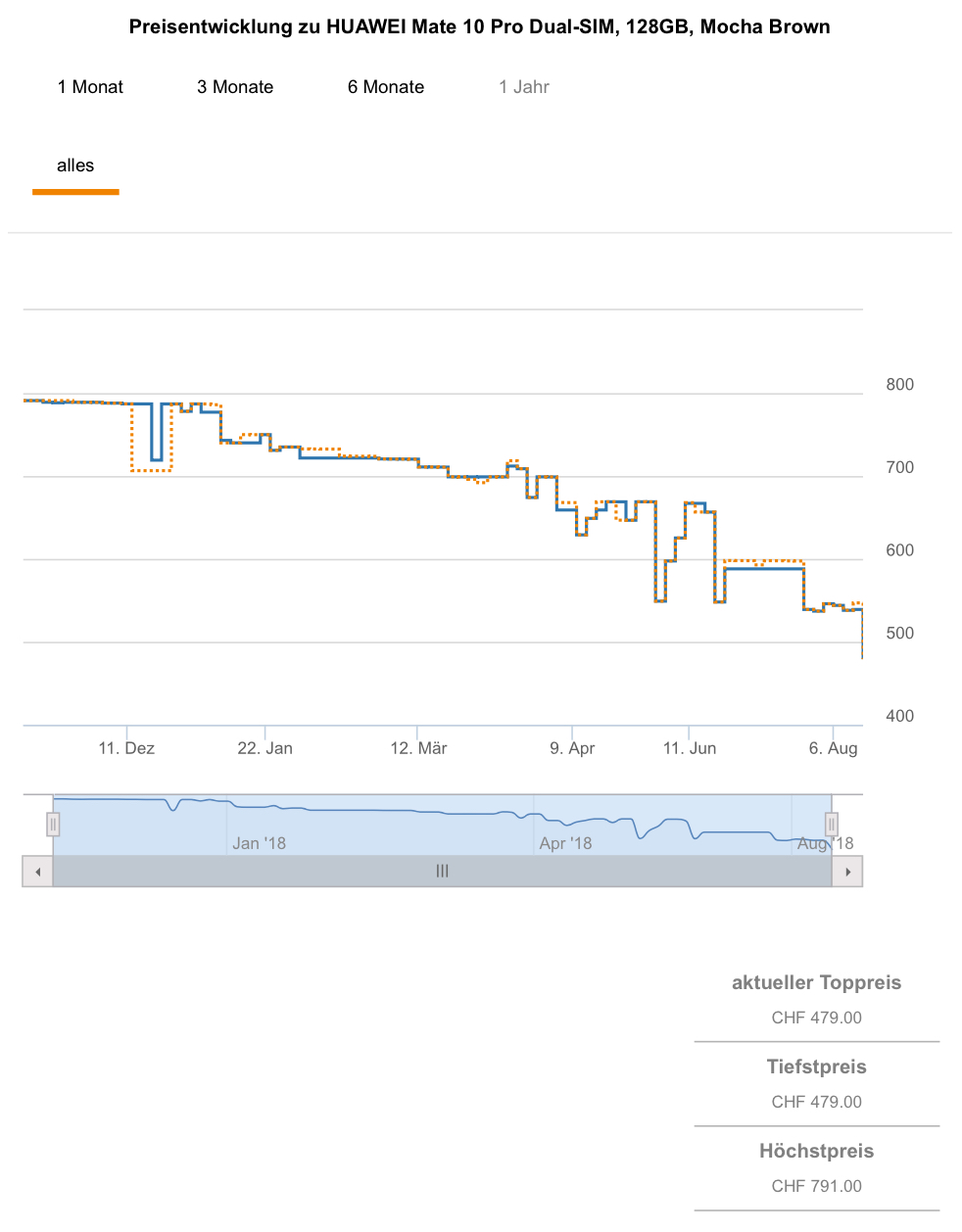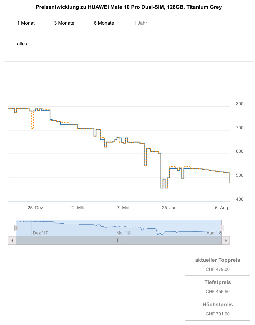 Gemäss toppreise gab es das Handy in Titanium Grey schonmal für 456.50 CHF (scheint aber merkwürdig, da wir dies hier bestimmt erwähnt hätten), in Mocha Brown gab es das Hand noch nie günstiger als für 537.- CHF.