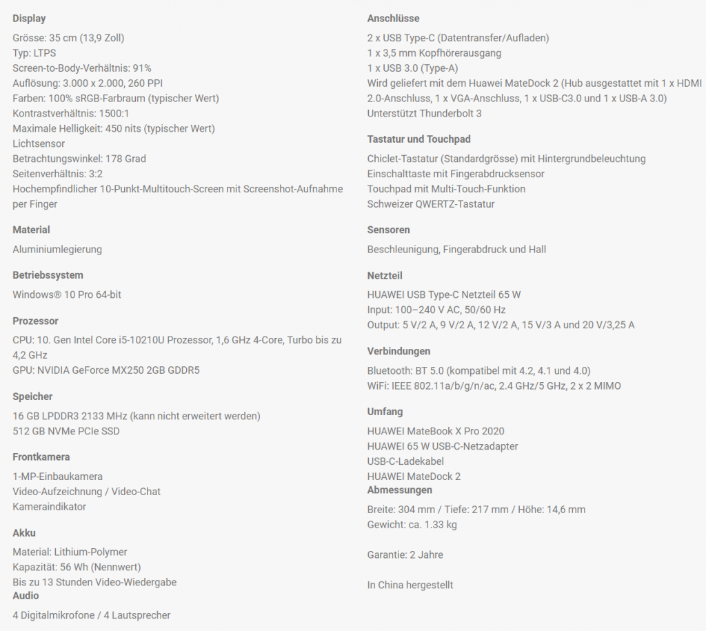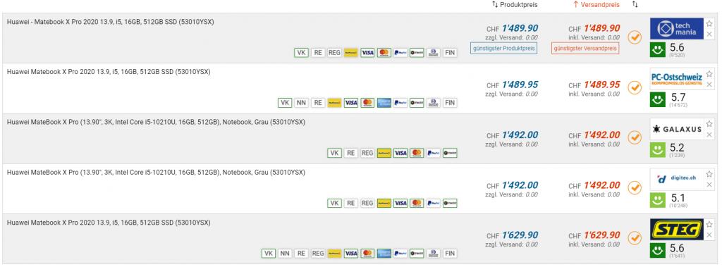Bei QoQa gibt’s gerade das huawei MateBook X Pro 2020 für CHF 899.- Bestpreis dürfte bei CHF 999.- gewesen sein. Derzeit ab CHF 1489.- erhältlich.