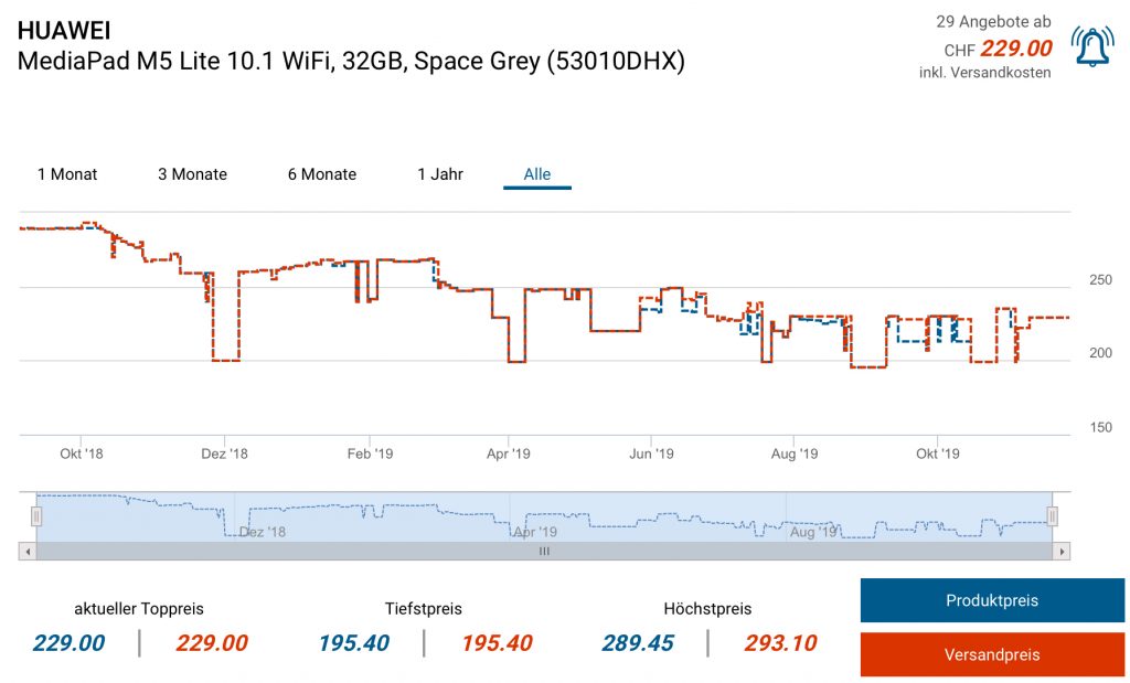 Bei amazon.de gibt es aktuell das HUAWEI MediaPad M5 Lite 10.1 WiFi, 32GB für 155.- EUR.