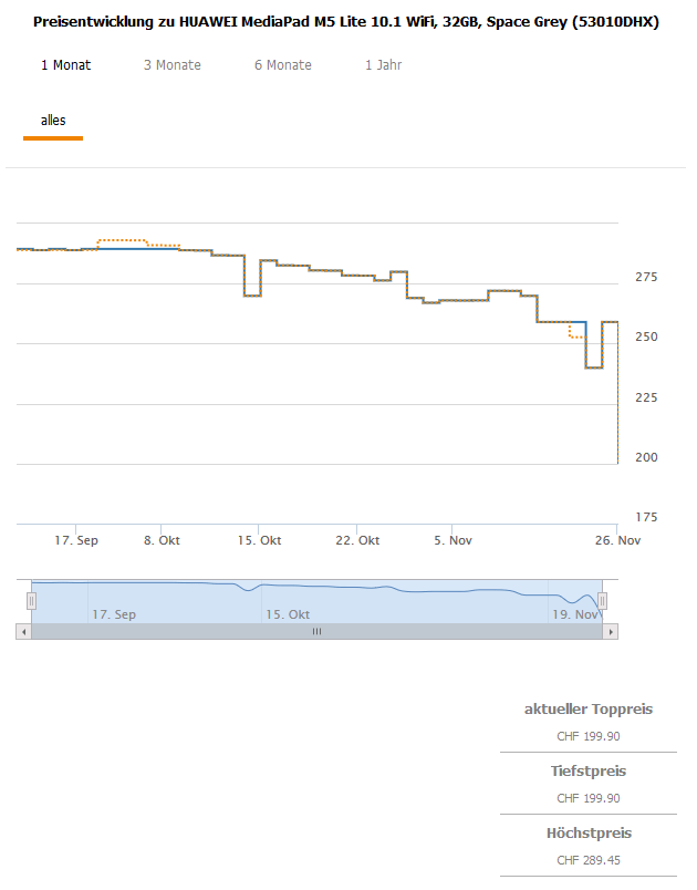Bestprice bislang waren 239.90 CHF, der zweitbeste Preis aktuell liegt bei 257.- CHF.