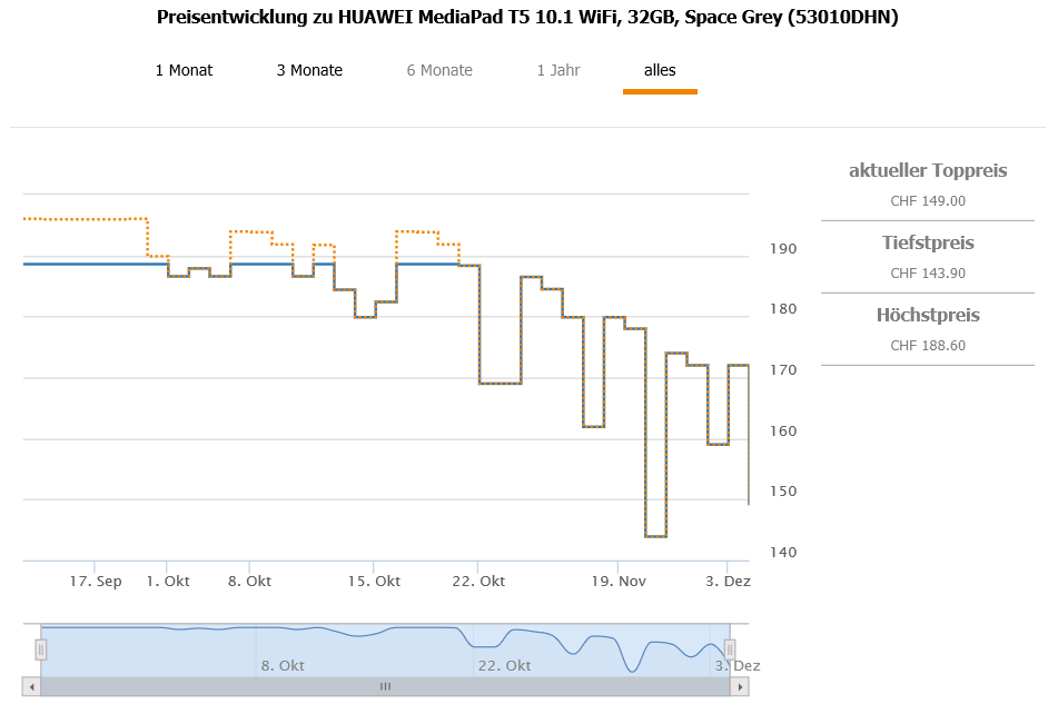 Bei melectronis gibt es aktuell das HUAWEI MediaPad T5 10.1 WiFi, 32GB für 149.- CHF.