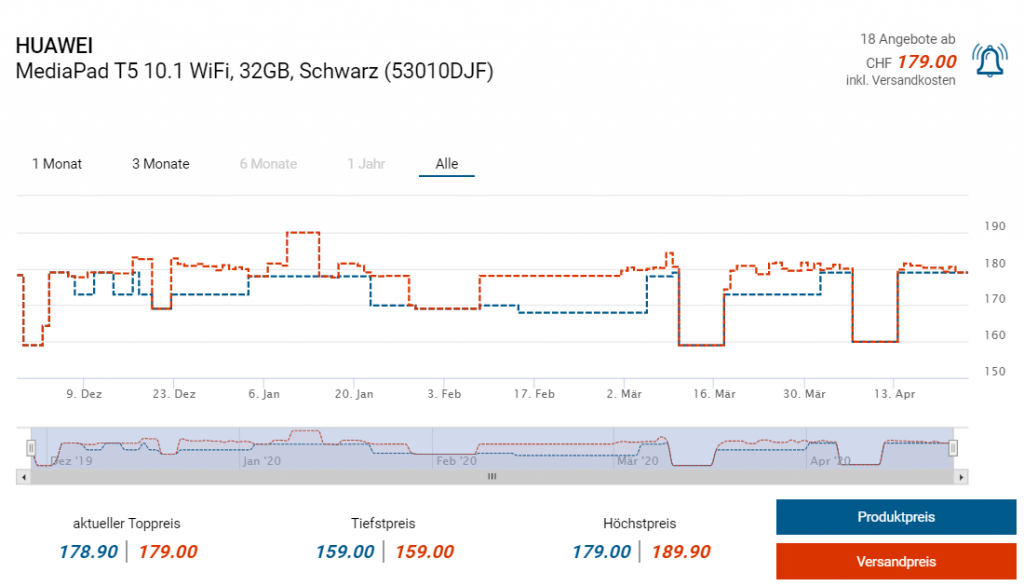 Bei amazon.de gibts das Huawei MediaPad T5 in der 10″ Variante scheinbar zum Bestpreis. Auf Preispirat konnte ich nach kurzer Recherche nur die 2GB-Variante zum Bestpreis von ca. 131 Franken sichten, die 3GB-Variante jedoch nicht. Ansonsten gabs das LTE-Modell mit 16GB auch schon günstiger für 129 Franken.
