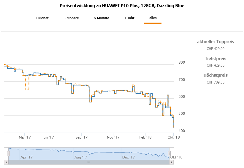 Bei digitec gibt es aktuell das HUAWEI P10 Plus mit 128GB in der Farbe Dazzling Blue für 429.- CHF. Gemäss toppreise war der bisherige best price & zeitgleich aktuell zweitbeste Preis 499.- CHF. Make Every Shot A Cover Shot