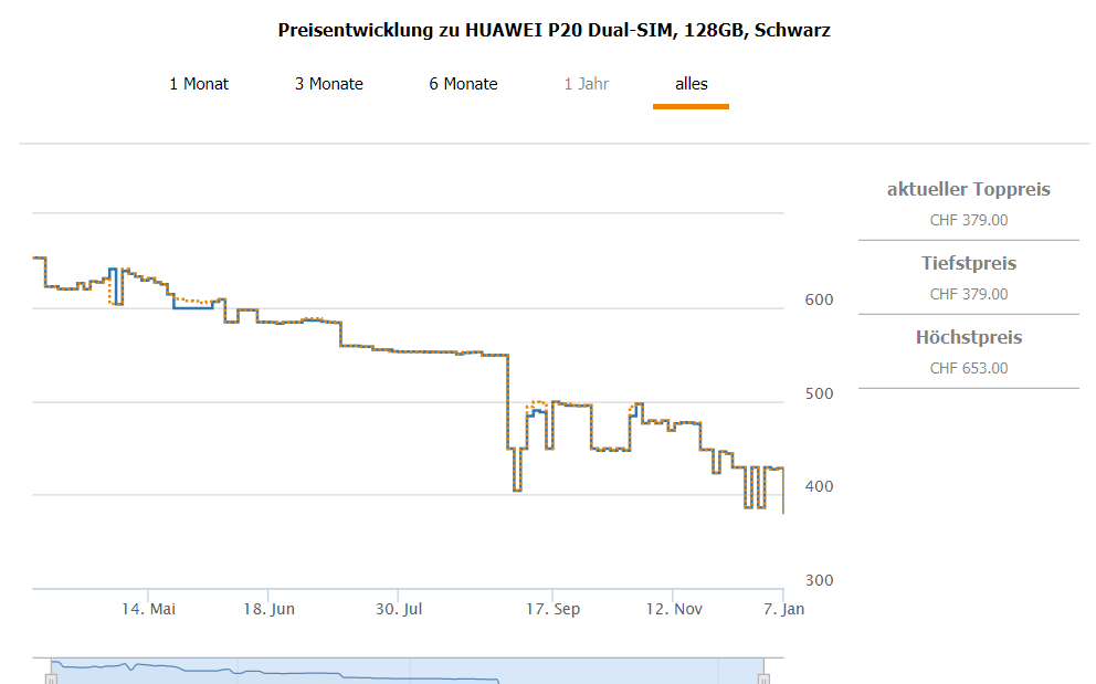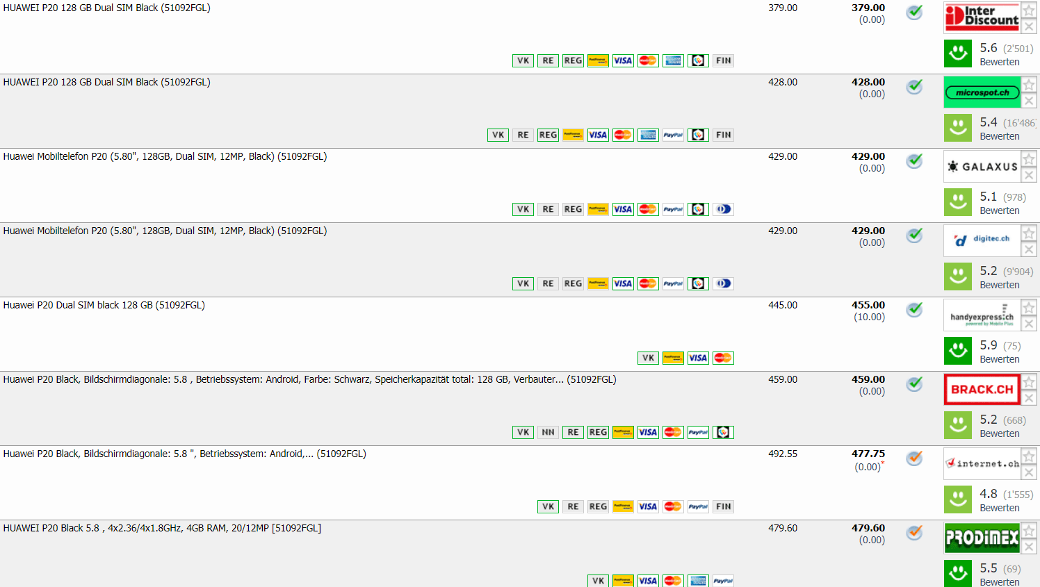 Interdiscount bietet mal wieder das HUAWEI P20 (128 GB, Black) günstiger an. Der Bon von 50 CHF wird automatisch abgezogen. Laut Info gültig vom 7.1. - 20.1.2019.