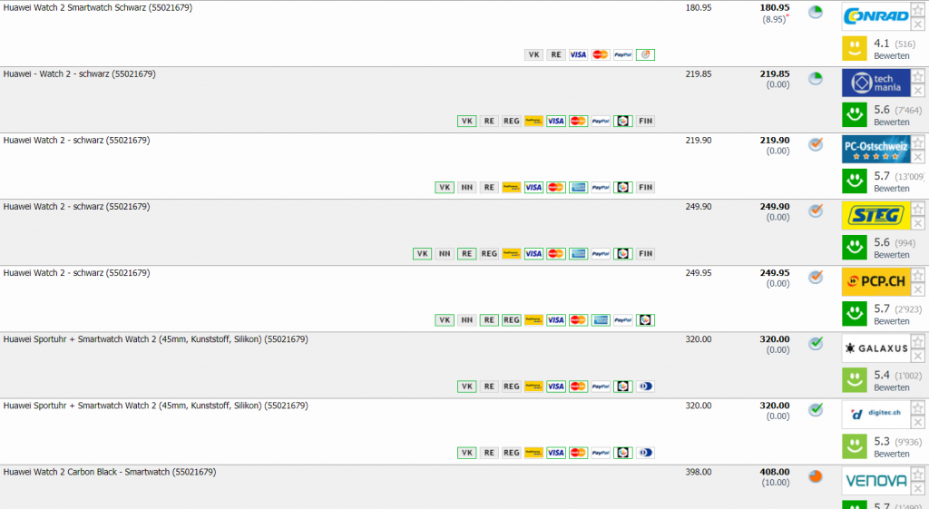 Bei Conrad gibt’s die Huawei Watch 2 gerade für CHF 180.95. Bezahlt man mit der Bezahlart  und gibt zusätzlich den Gutscheincode SO20BD ein, gibt’s nochmals 20.- Rabatt und Gratislieferung. Die Huawei Watch 2 gibt’s somit für CHF 160.95