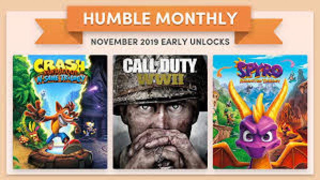 Zurzeit gibts im monatlich kündbaren Humble Monthly die 3 Spiele Spyro Reignited Trilogy, Crash Bandicoot N.sane Trilogy und Call of Duty World War II als Steam-Keys. Wenn man mit dem Kündigen bis zum 1. November wartet gibts noch ein Spiel als Überraschung dazu. Ob dann allerdings der nächste Monat bereits verrechnet wird, kann ich euch nicht sagen.