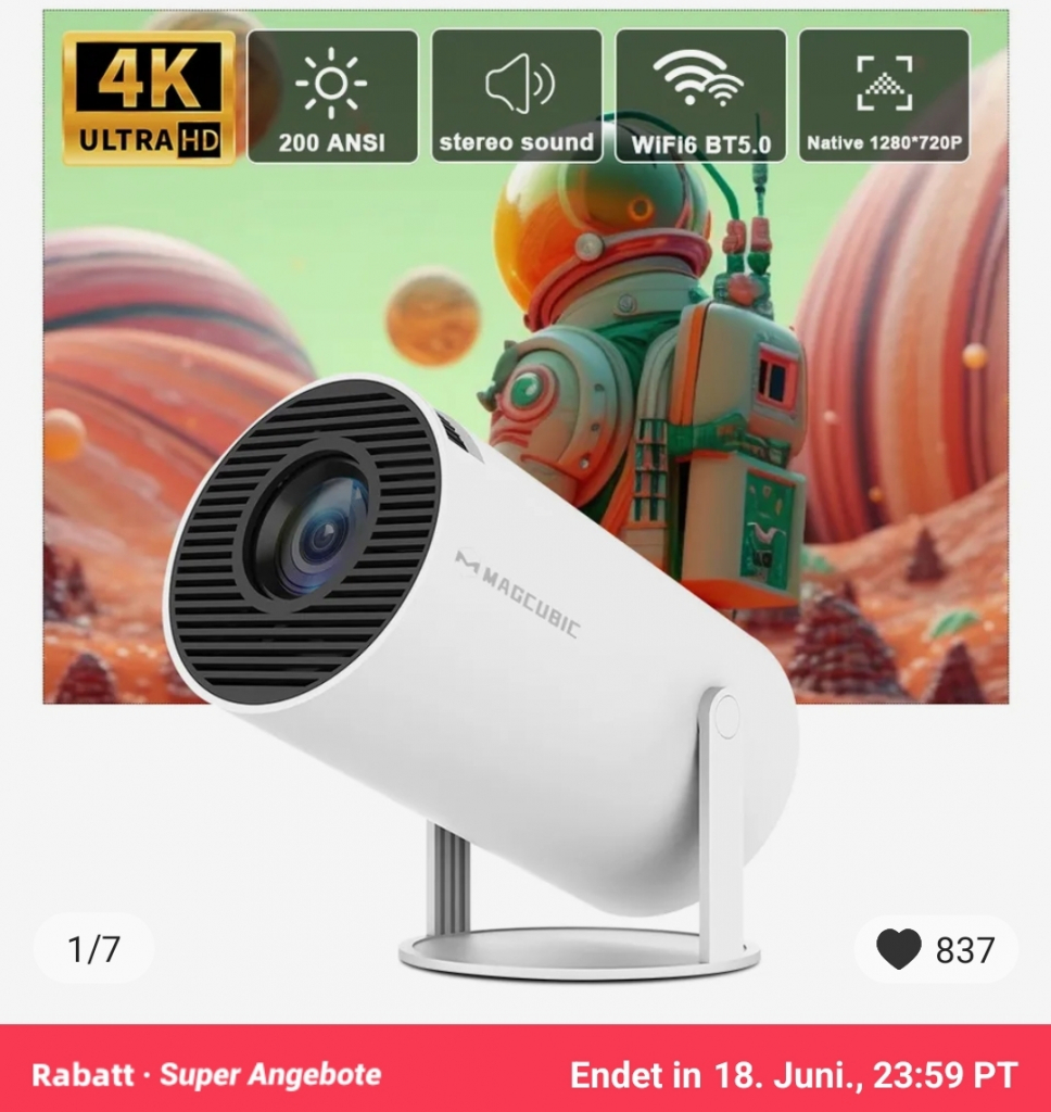Dazu hat Ali wider Rabatt Tage bis 18.06.23 das heist ihr spart beim Beamer bis denn mindestens 3.69 Fr zusätzlich natürlich könnt ihr auch mehr bestellen maximum Rabatt ist bis 11.06 Fr möglich