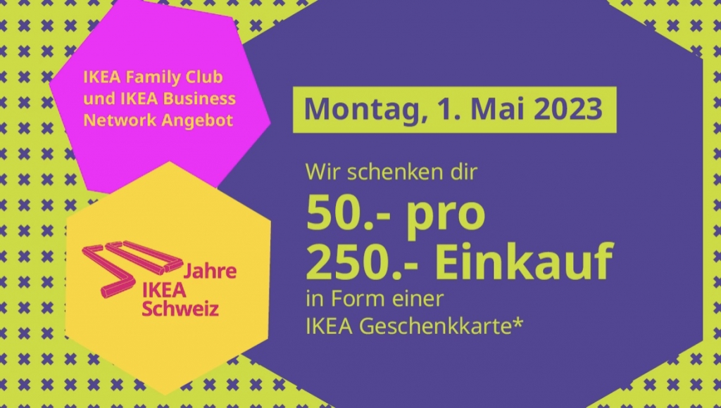 Bei IKEA Spreitenbach gibt es am 1. Mai 2023 pro 250.- Einkauf eine Geschenkkarte von 50.-