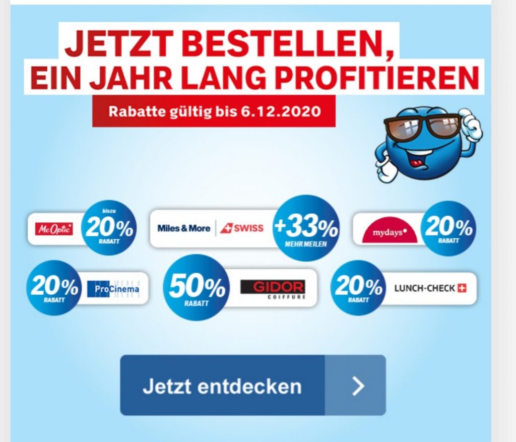 Auch dabei Pro Cinema Kinokarten 20% oder Gidor Coiffure 50% Rabatt.